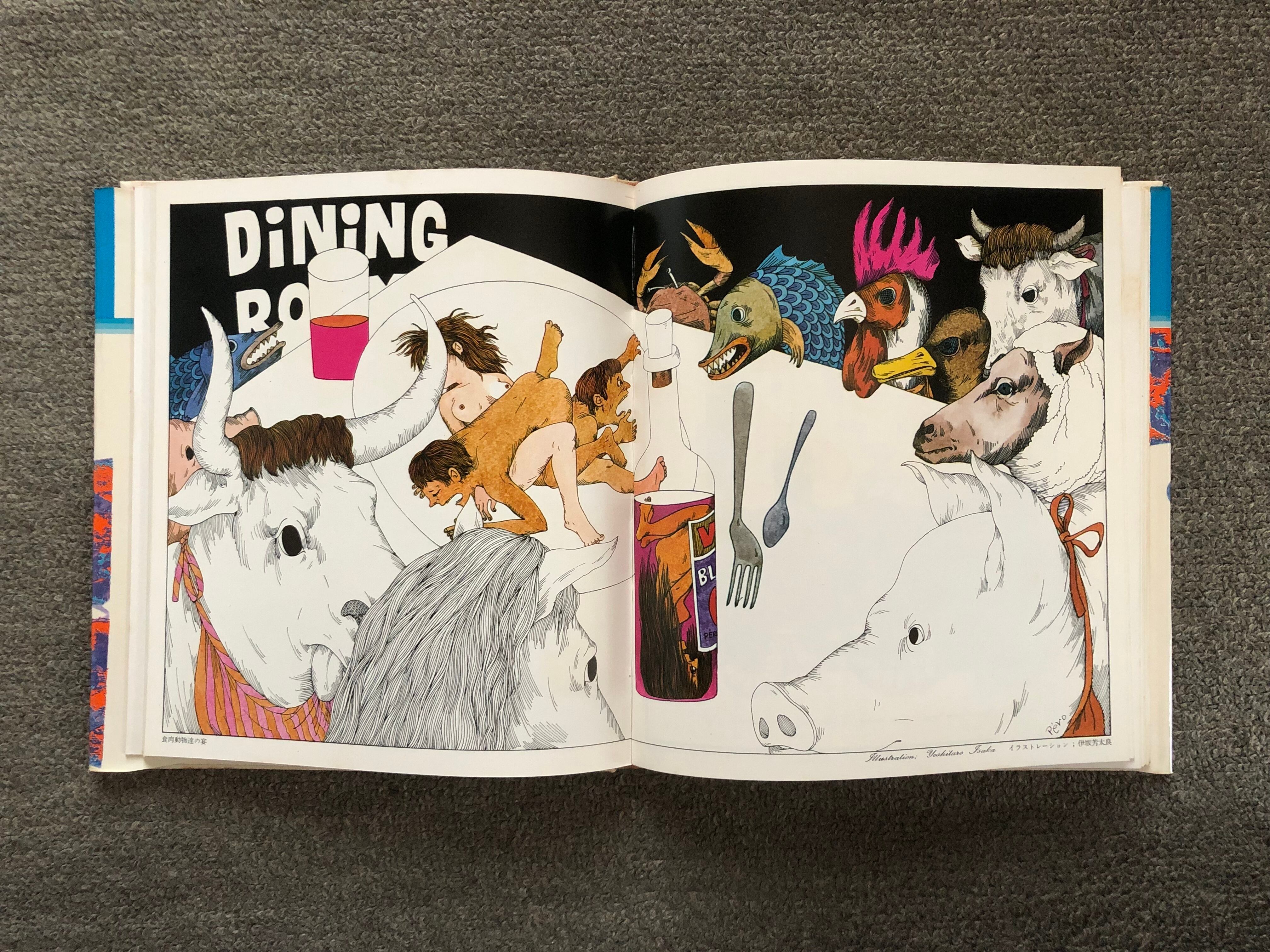 古本/ドリーム出版/1967年初版/190×218mm/201p/アートディレクター:野田弘志、デザイナー:三上洋子、カバーイラストレーション:高垣範安・石渡博次、箱イラストレーション・本文カット:古谷三枝・三上洋子、扉イラストレーション:安野光雅、アーティスト:安野光雅、伊坂芳太良、宇野亜喜良、久留米裕、高垣範安、野田弘志、横尾忠則、横須賀功光、和田誠
