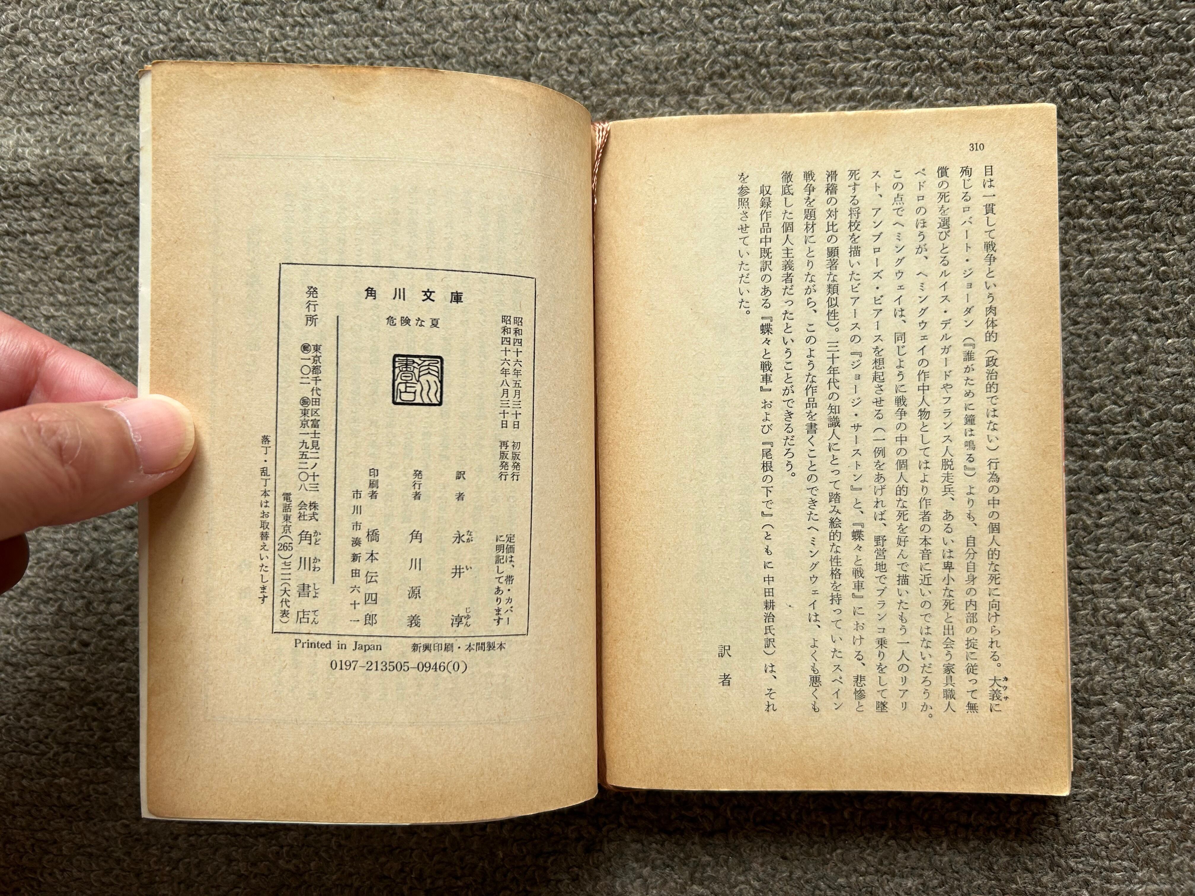 古本/角川文庫/1971年再版/107×150mm/310p/訳:永井淳、カバー:山野辺進